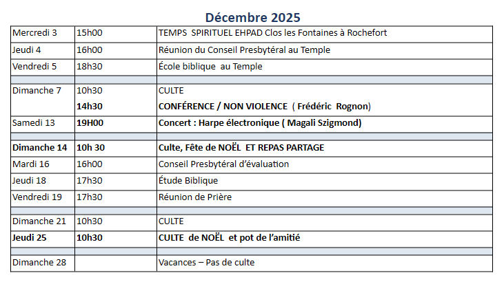 Décembre 2025 - Protestants à Rochefort - Eglise protestante de rochefort - Paroisse protestante de Rochefort